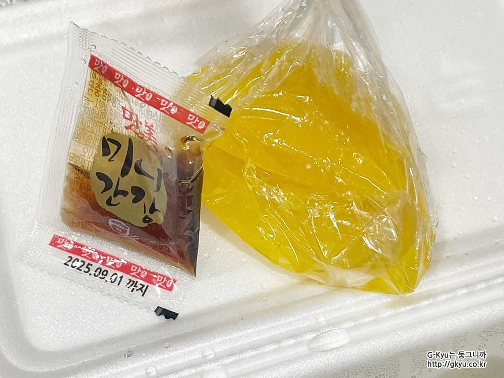 만두 포장 1개당 들어있는 간장과 단무지