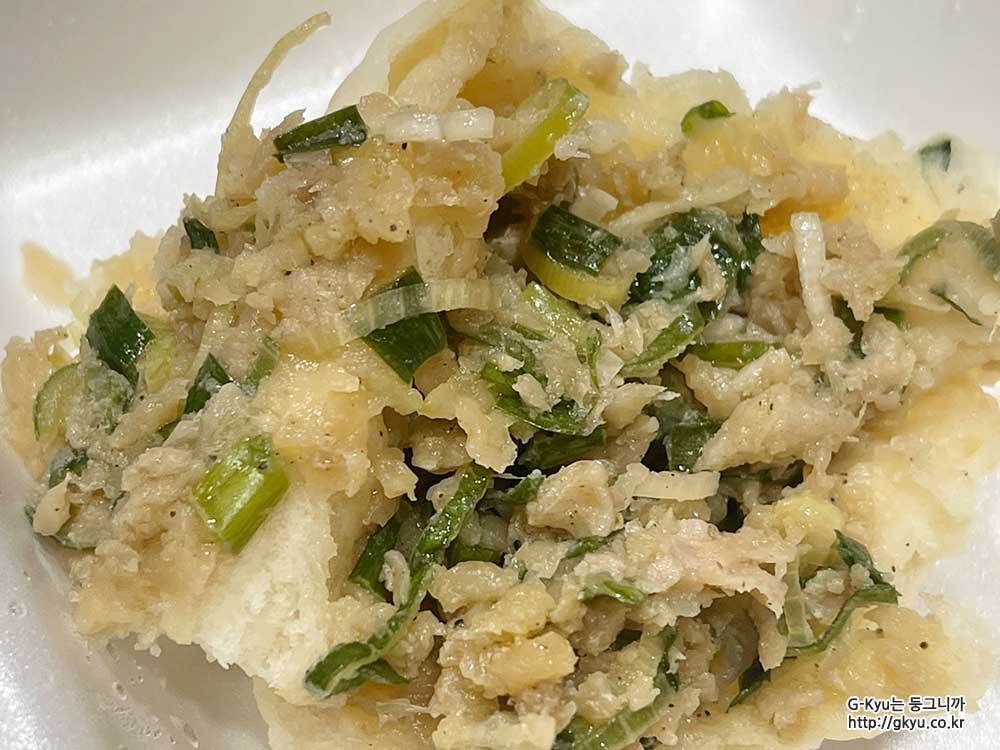풍성하게 들어있으나 파가 잘게 썰리지 않은 느낌이라