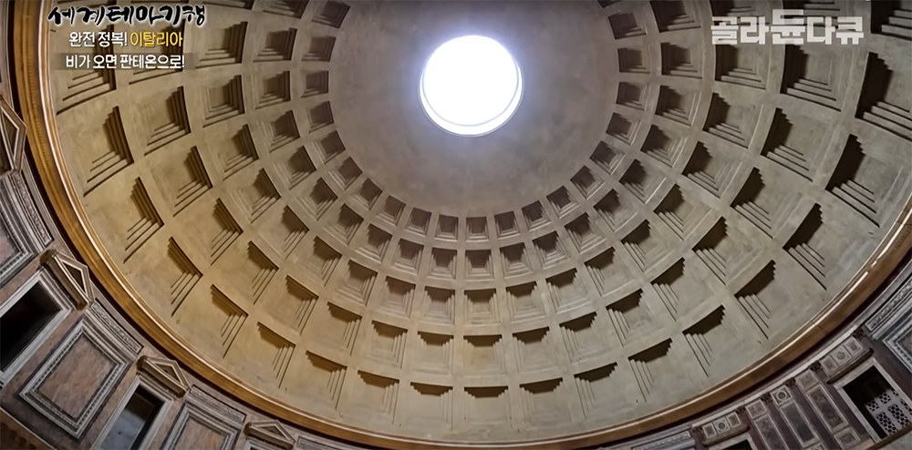 태양의 눈, 오쿨루스(Oculus)라고 불리는 저곳으로 비가 그대로 들어온다.