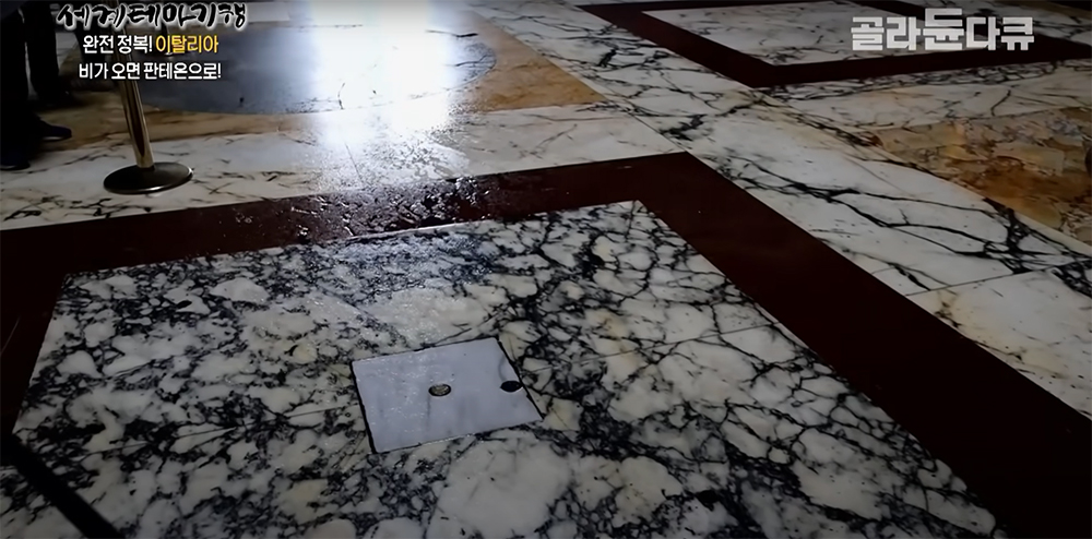 비가 와도 배수 시설로 인해 판테온 실내는 물로 차지 않는다.