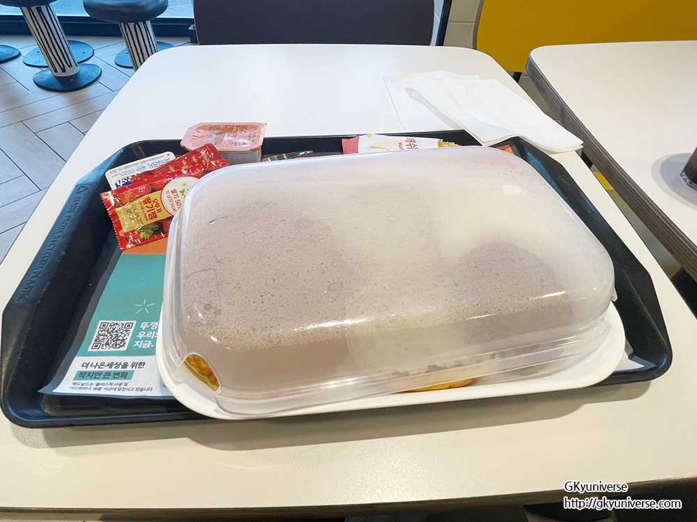햄버거 번(빵)과 패티가 나오는데, 딸기잼, 포도 쨈이 나오므로