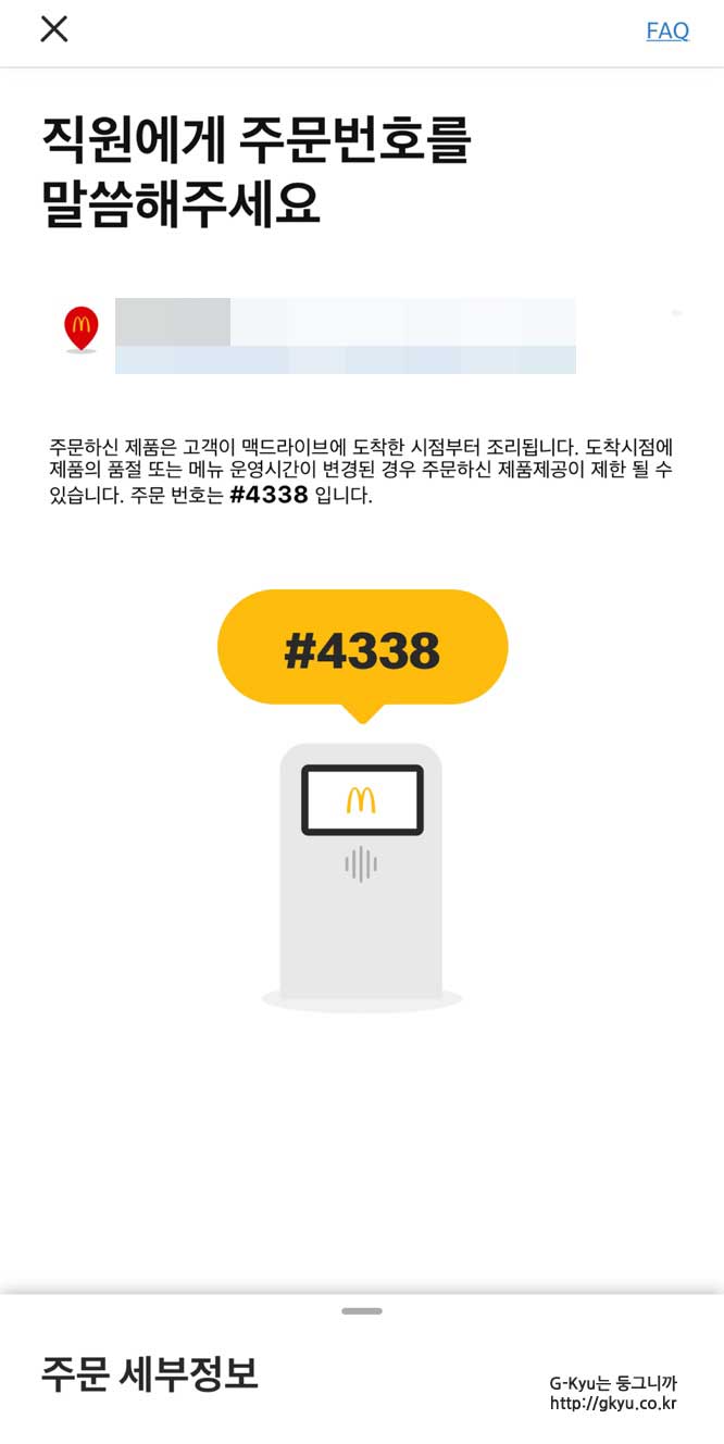 맥드라이브 입구로 간 뒤, 주문 번호를 이야기하면 별도의 결제 없이 음식을 받을 수 있다.