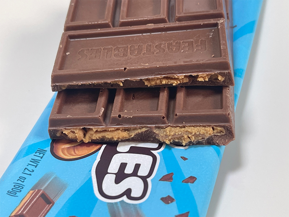 초콜릿 전체가 피넛 버터가 범벅이 된 게 아니라 좌우 그리고 양쪽 끝 일부는 피넛버터가 들어있지 않았다.