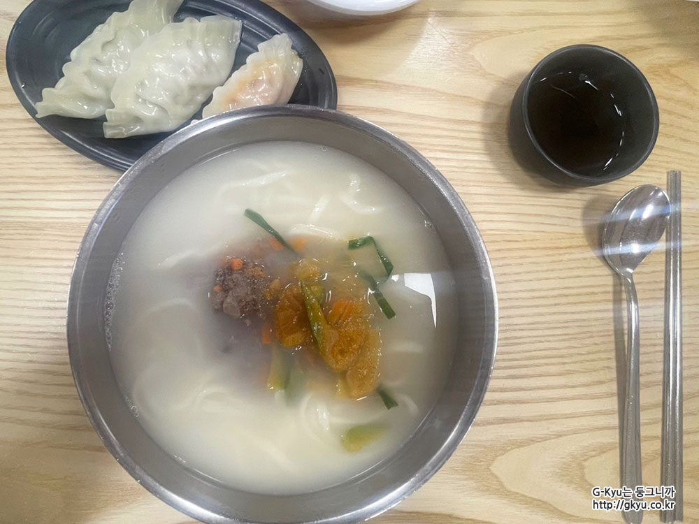 칼국수 국물은 얼큰하다기 보다는 뭔가 물엿 맛이 나는 것 같았다