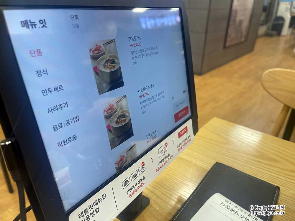 작은 키오스크가 식탁에 붙어 있다.