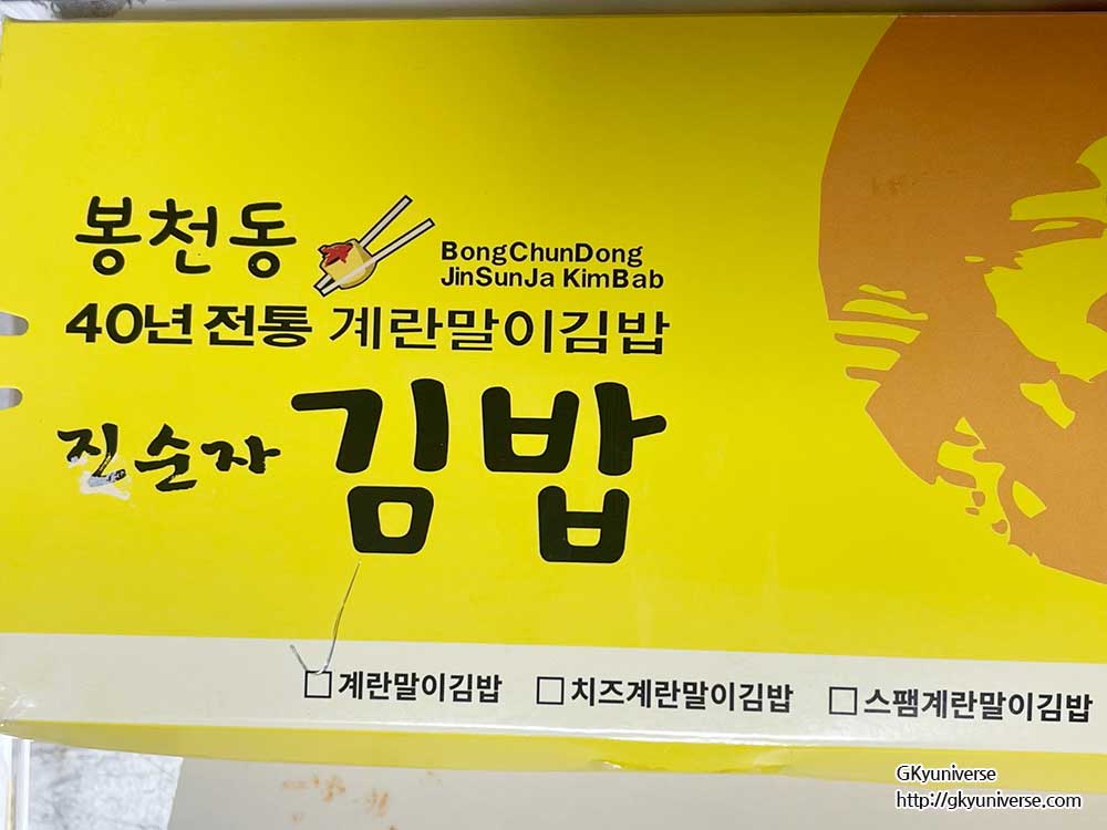 처음 보는 김밥 체인점이었는데, 봉천동에서 처음으로 시작되었고