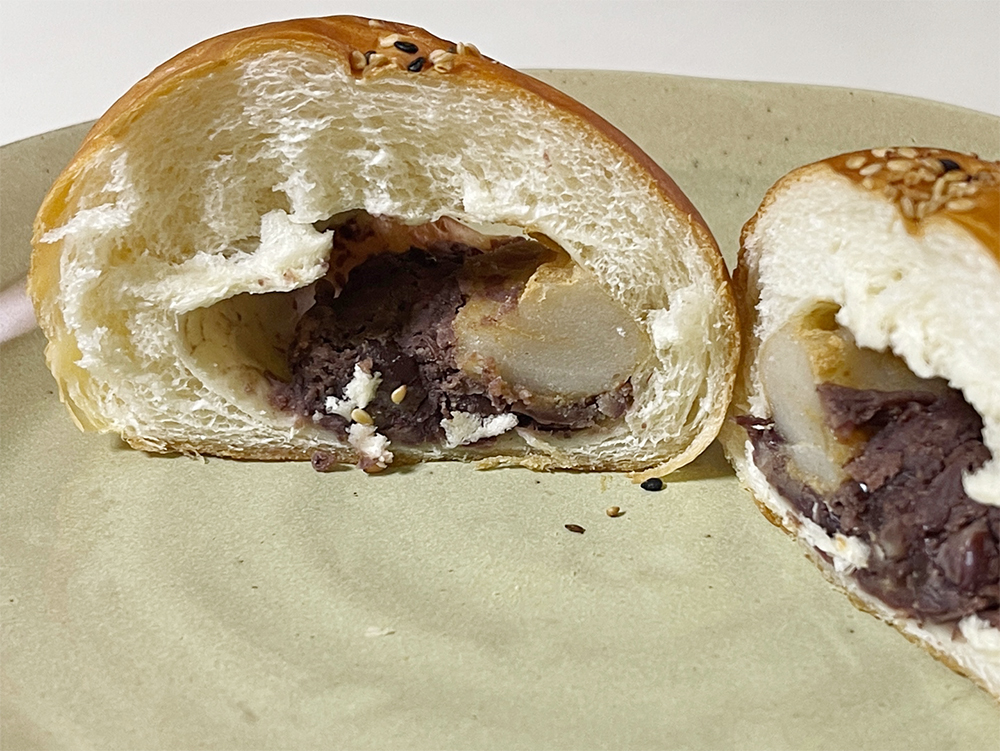 수제 팥과 인절미를 갈아서 넣은 빵인가? 인절미에 팥을 묻힌 뒤 빵으로 감싼 것인가?