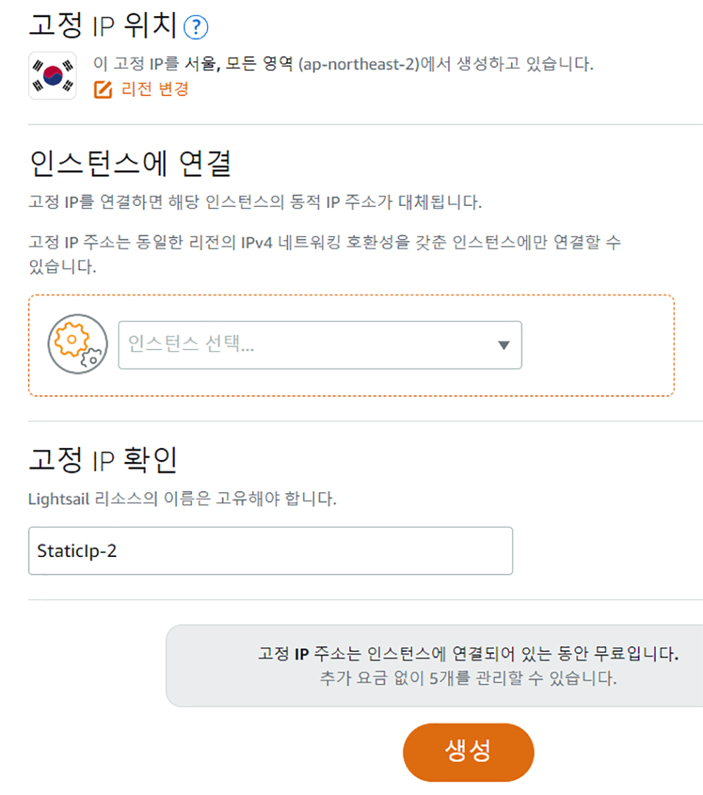 생성을 선택하면 이렇게 고정 IP가 만들어진 것을 알 수 있다