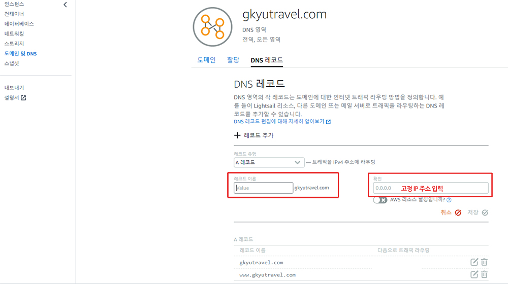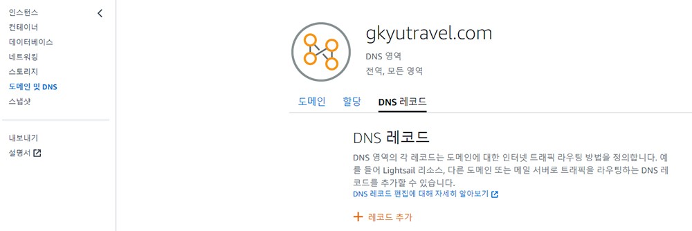 도메인 및 DNS에서 DNS 레코드를 클릭하면
