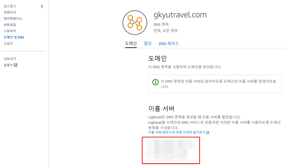 왼쪽 메뉴에서 도메인 및 DNS를 클릭 후,
