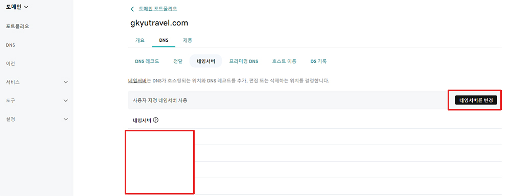 기존에 사용하던 한국 회사의 도메인 네임 서버를 바꾸는데