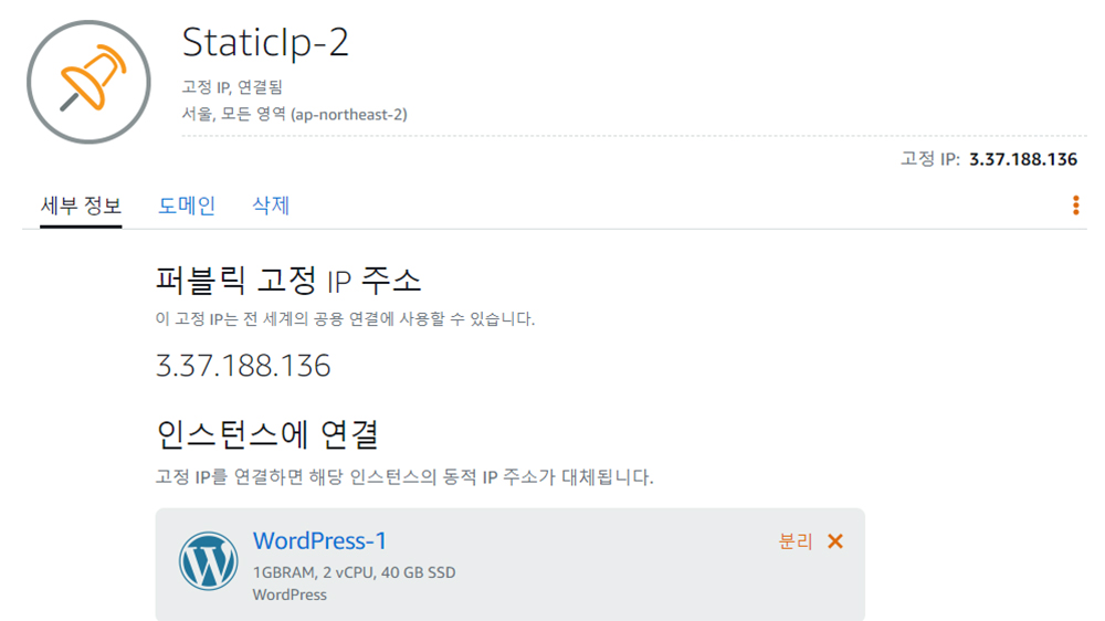 예를 들어 고정 IP 주소가 3.37.188.136라고 한다면,