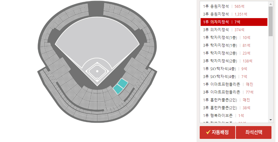 이 공이 1루 의자 지정석