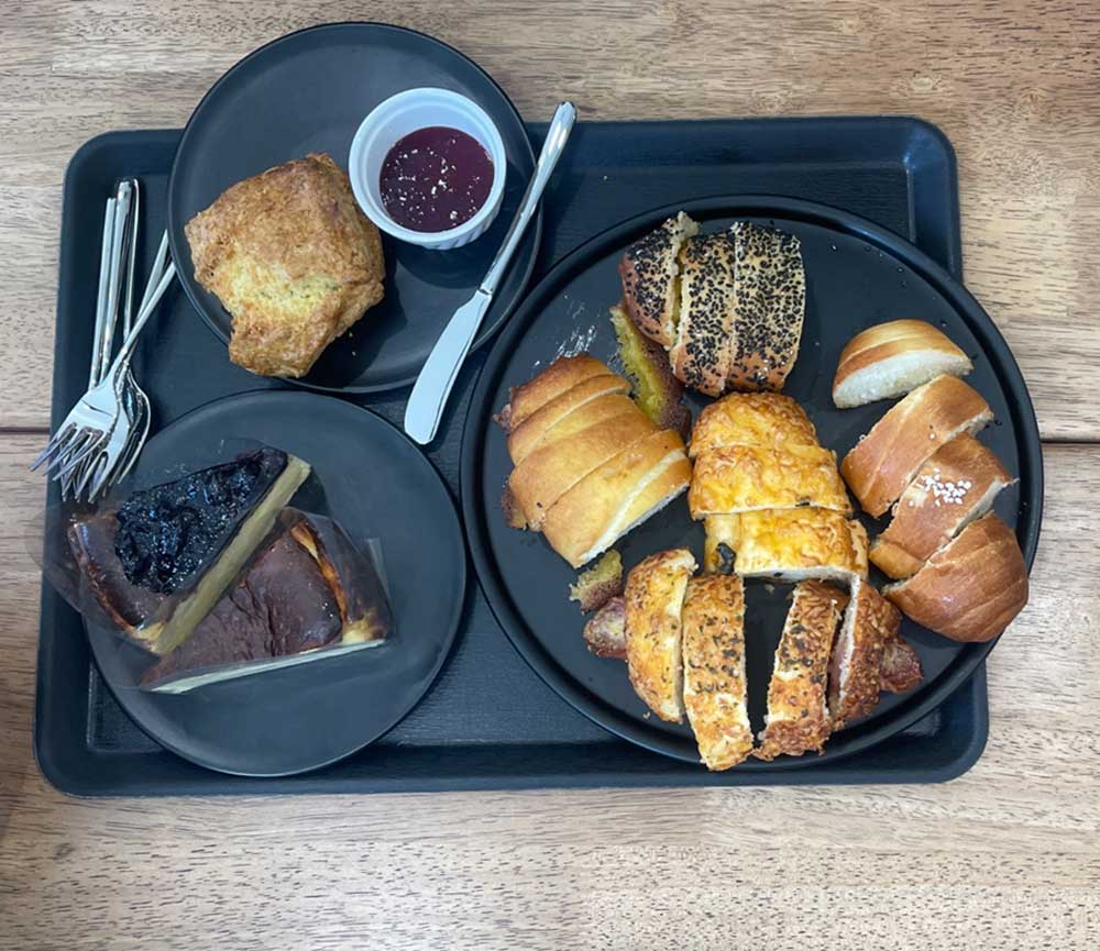 그 옆엔 케이크가 있었다. 티라미수 케이크, 블루베리 바스크 치즈 케이크, 바스크 치즈 케이크. 이 케이크는 밀가루와 버터를 사용하지 않은 고급스러운 케이크다. 예전에는 커피와 도넛이 하나의 세트로 여겨졌다. 이후에는 케이크와 커피가 하나의 세트로 인식되었는데 실제로 서구 문화에서 커피와 도넛은 옛날 음식 조합이라고 생각한다고 한다.