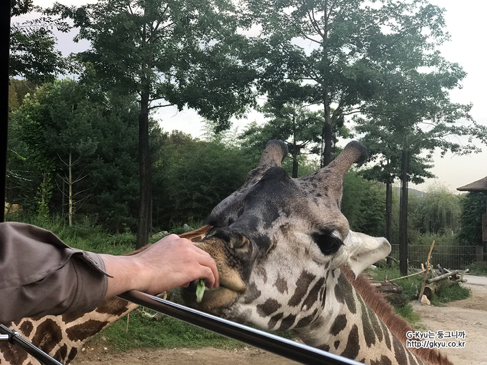 어디에 앉아야 기린에게 먹이 주는 모습을