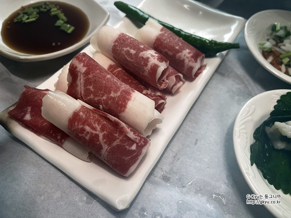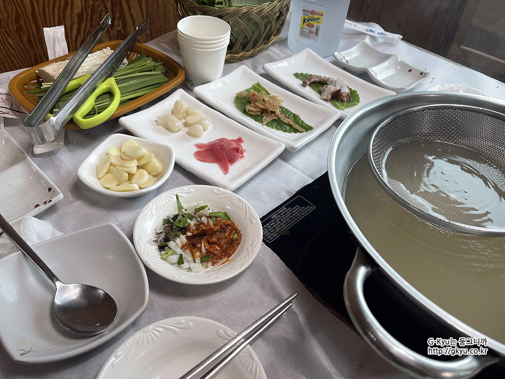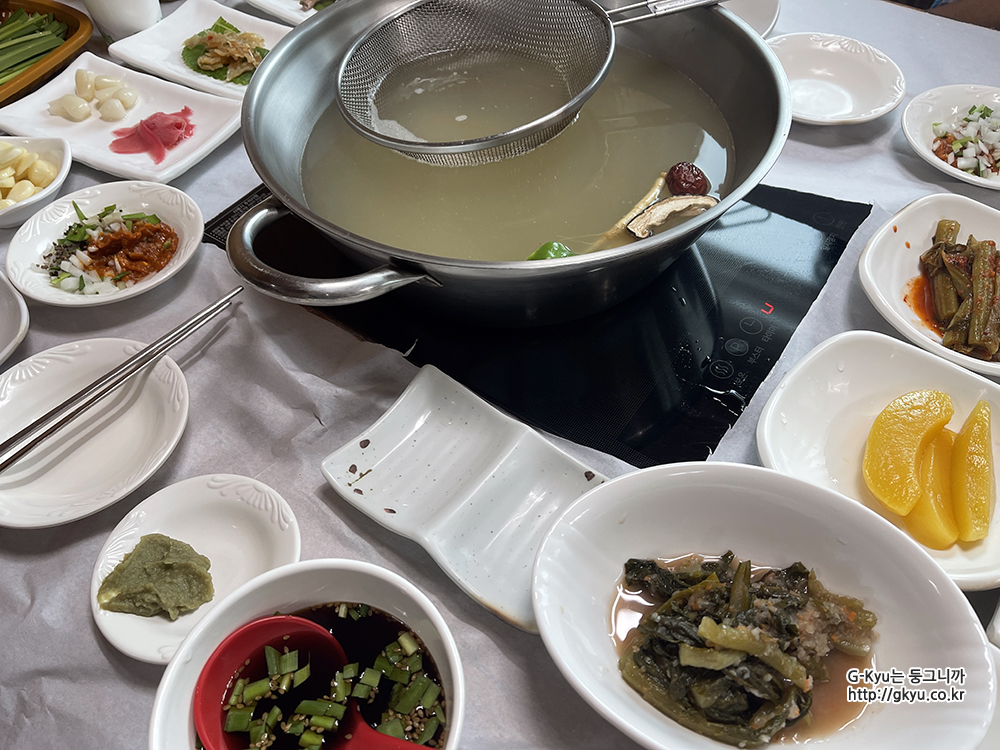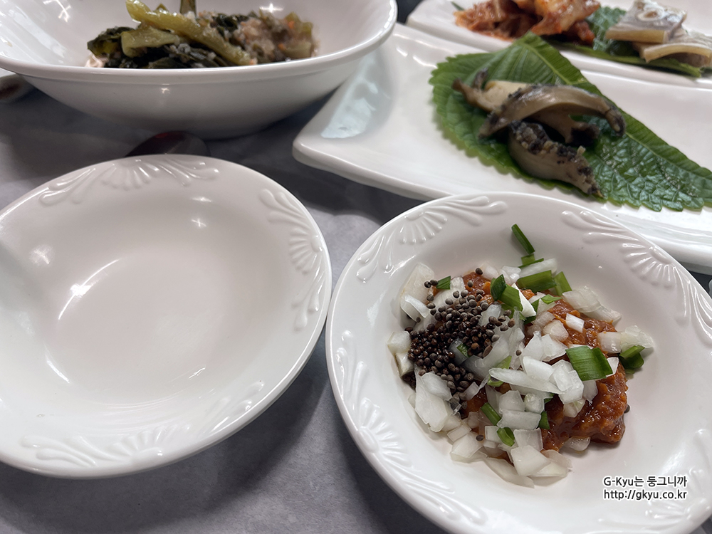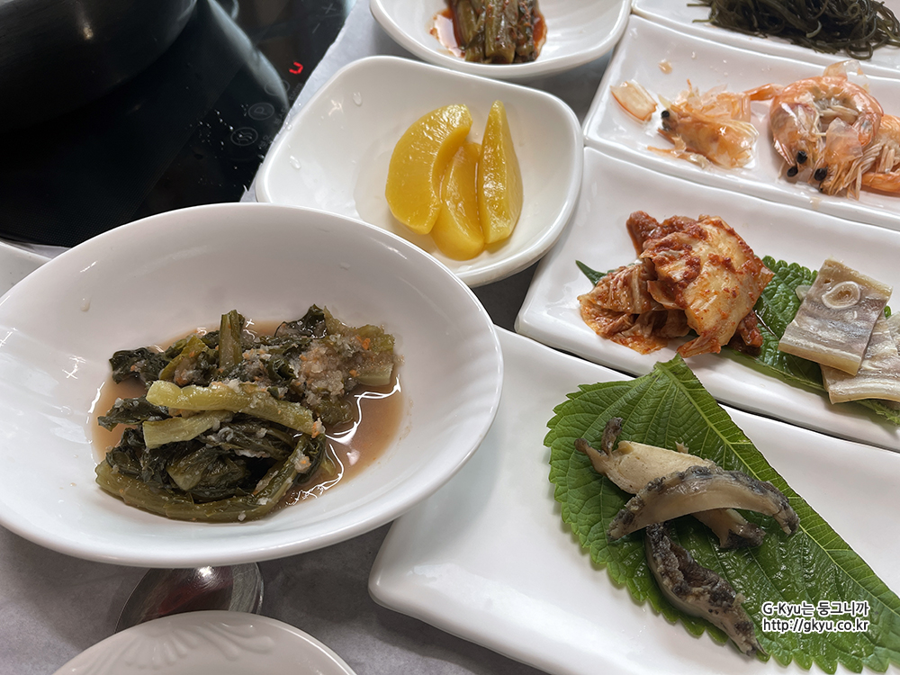 부추, 팽이버섯, 그 외 밑반찬들이 있다