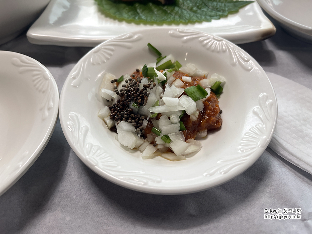 함께 찍어 먹으면 좋고, 쌈 안에는 원하는