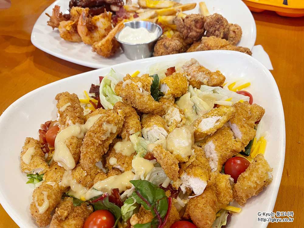 따끈한 치킨텐더와 각 종 치즈와 야채는 입맛을 돋워 준다.