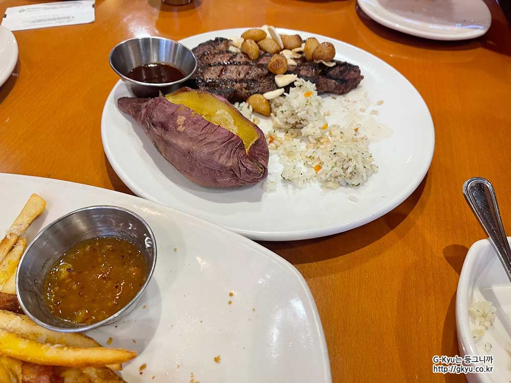 스테이크 2개를 주문하게 되어 사이드 메뉴를 4개 고를 수 있었다.