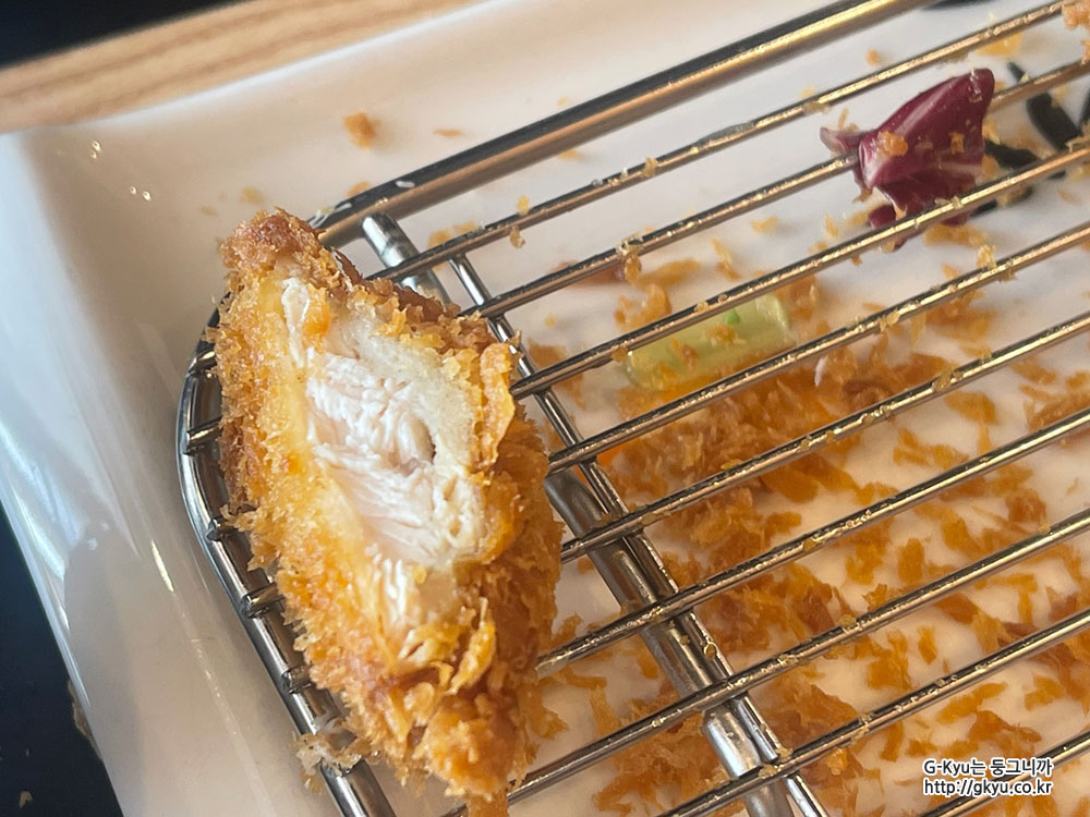 치킨 가츠의 두께는 등심 돈가츠처럼 두툼한 느낌이다.