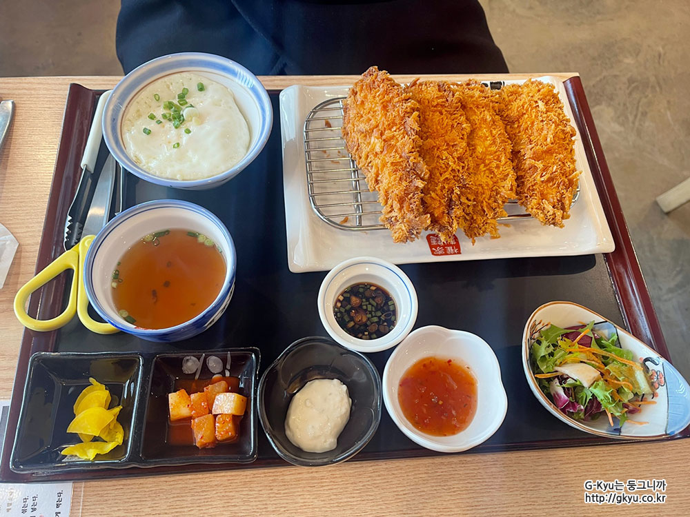 두툼 해 보이는 돈가츠와 일식당 특유의 아기자기한 그릇이 눈에 들어온다.