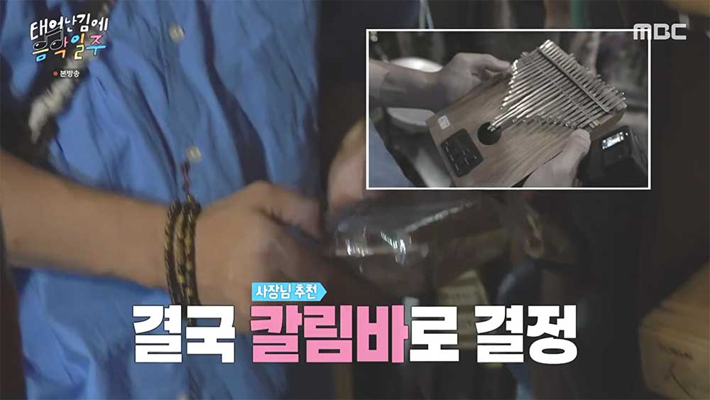 한마디로 다룰 줄 아는 악기가 없다고 해도 될 정도인 그에게 주인은 칼림바를 추천해 준다. 엄지 손가락으로 튕기며 간단히 연주할 수 있는 악기이므로 기안84에게 적합하다고 생각했던 것 같다. 그래도 여러 악기를 둘러보고자 개구리 모양 악기인 귀로도 보고 종이 북도 두드려 본다. 결국 칼림바로 결정한다.