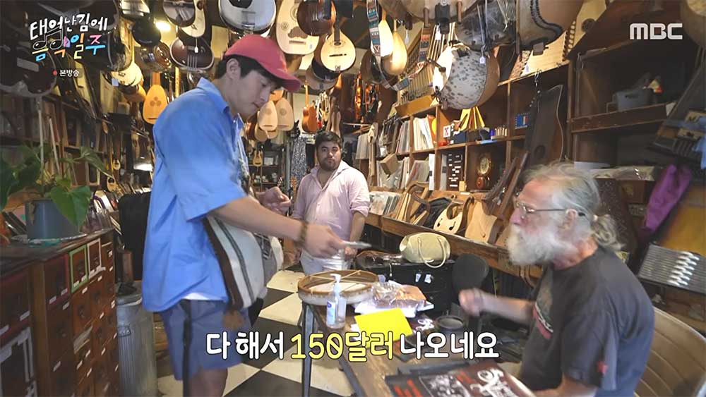 모두 같은 가격의 악기이며 총 가격은 $ 150 (USD) / 약 21만 원. 이 악기점이 마음에 들었는지 기안84는 유태오와 함께 악기점을 배경으로 태어난 김에 음악일주 포스터 사진을 이곳에서 찍었다.