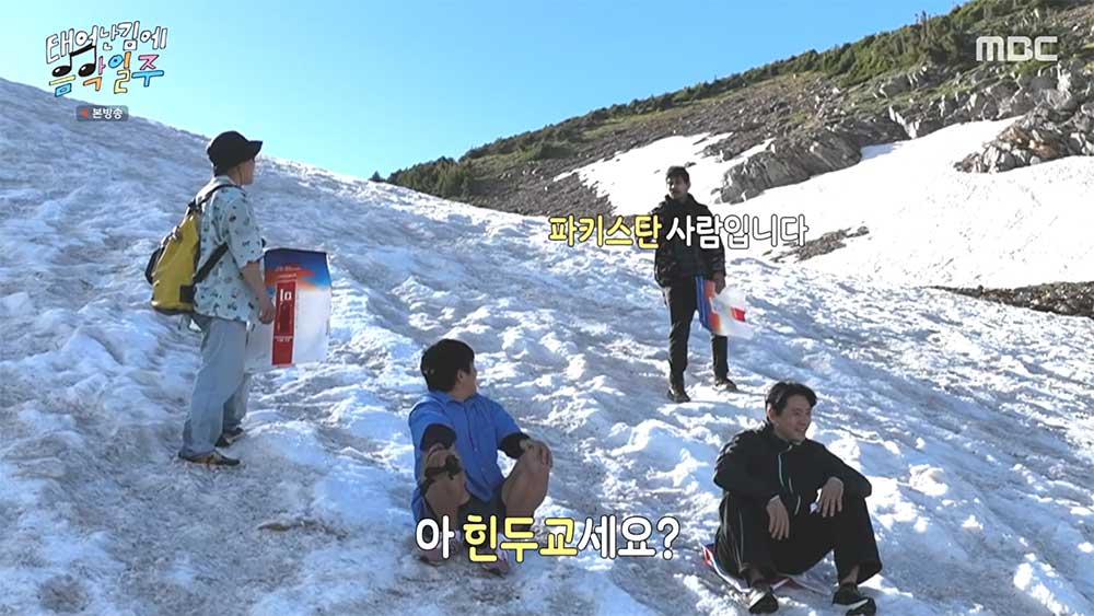 여름에 즐길 수 있는 풍경을 봤으니 이제 겨울에 즐길 수 있는 스포츠를 위해 조금 더 산을 오른다. 갑자기 폭주한 유태오는 휘파람을 불고 괴성을 지르며 날뛰자 기안84는 유태오가 부끄럽다는 이야기를 하며 산을 오른다. 유태오는 눈이 보이자 눈을 뭉쳐서 빠니보틀의 뒤통수를 맞추며 갑자기 오른 흥의 절정을 보인다.