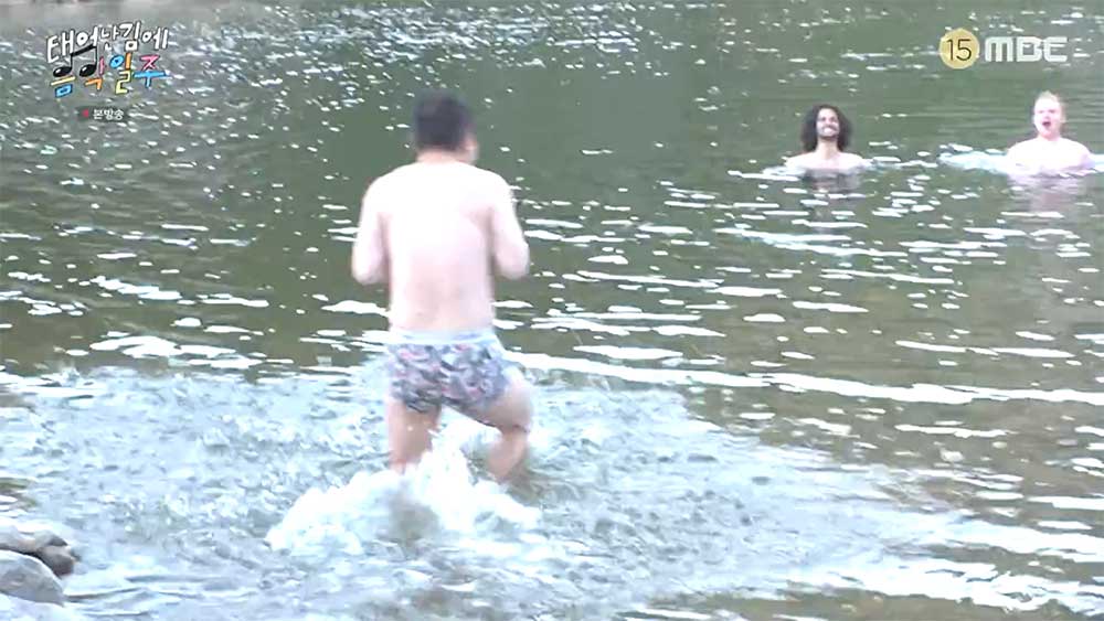 눈썰매를 타고 그냥 가기 아쉬운데 차가운 물에서 수영을 하는 외국인 두 명을 본다. 기안84가 먼저 들어가고 컨디션이 안 좋은 유태오는 이 들을 바라본다. 이때 기안84는 빠니보틀을 불러서 수영복이 아닌 팬티만 입고 찬 물속으로 들어가는 빠니보틀.