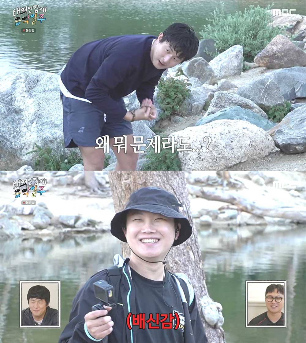 평소라면 수영복을 미리 입고 왔을 빠니보틀인데 예상치 못한 입수에 준비한 옷이 없었다. 그래서 젖은 몸은 바지로 닦고 다시 원래 입었던 옷을 주워 입는데 그 모습을 본 유태오가 자신의 긴팔 겉 옷을 준다. 기안84는 나약하다고 하며 추위에 질 수 없다며 팬티만 입은 채 내려가자고 했으나 말만 그렇게 하고 미리 챙겨 온 긴팔을 입는 기안84를 보자 빠니 보틀은 배신감을 느낀다.