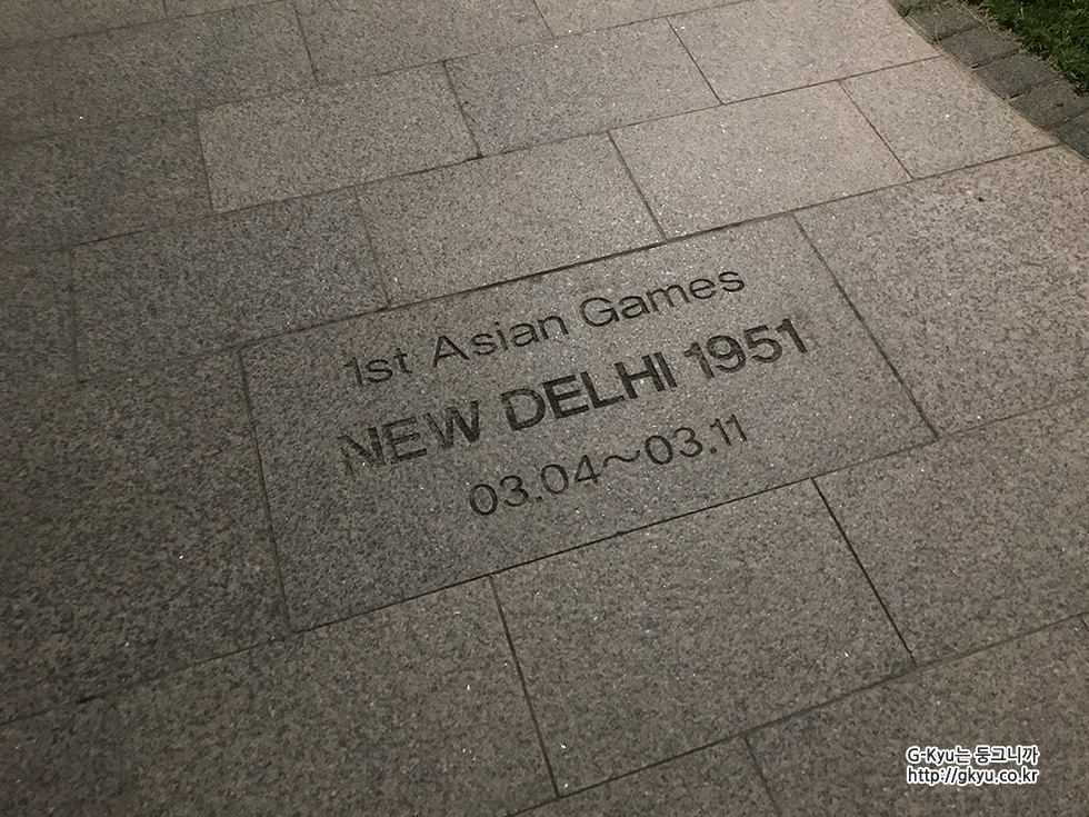 공원 언덕으로 올라가는 길엔 제1회 아시안게임의 지역, 날짜, 기간을 볼 수 있도록 기록 해 두었다 더운 지역이면, 비교적 선선한 날씨에 아시안 게임을 한 것을 알 수 있었다 카타르 도하는 아시안 게임을 했었다