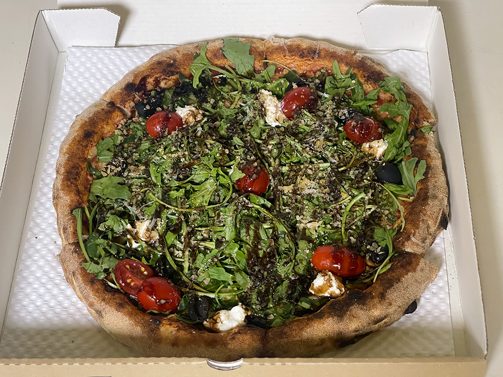토마토소스, 모차렐라, 리코타, 루꼴라, 토마토, 블랙 올리브, 호두, 발사믹으로 이뤄져 있다.