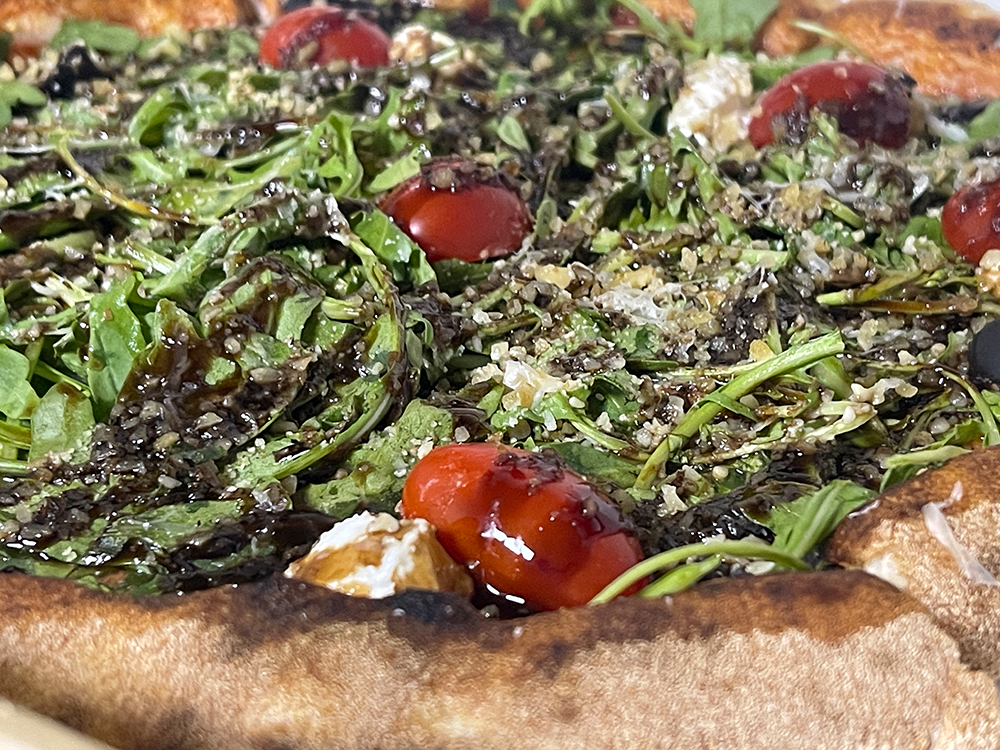토마토소스, 모차렐라, 리코타, 루꼴라, 토마토, 블랙 올리브, 호두, 발사믹