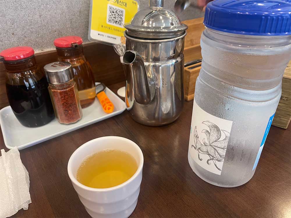평일이고 조금 이른 식사 시간에 방문해서 사람들이 줄을 서지 않았지만 사람들이 많으면 계산하는 데도 시간이 필요하다. 그래서 기다리기 싫은 사람들은 테이블을 자세히 보면 주전자 뒤에 QR코드를 활용하면 된다. QR코드는 테이블마다 비치되어 있고 테이블 번호가 적혀 있어서 테이블 번호 확인 후 카카오 페이를 통해 미리 결제할 수 있다.