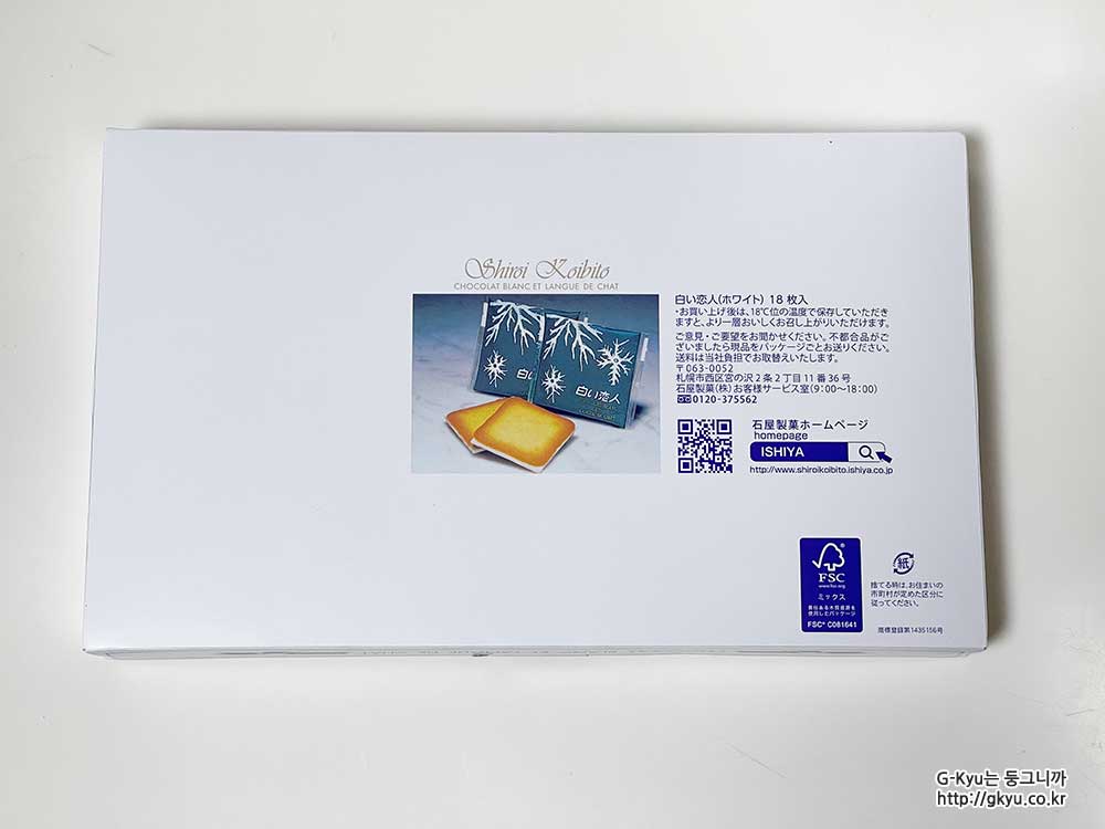 프랑스어로 적힌 이 뜻은 화이트 초콜릿 그리고 랑그드셔 (고양이 혀)라고 적혀 있다.
