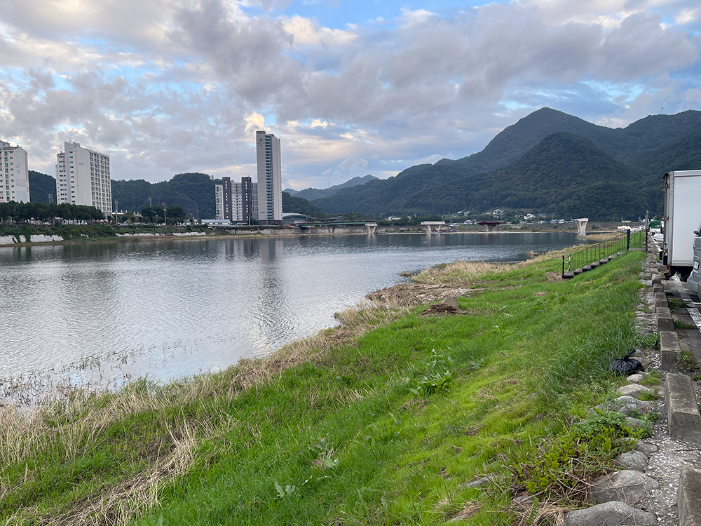 조양강 바로 옆에 만들어진 주차장.