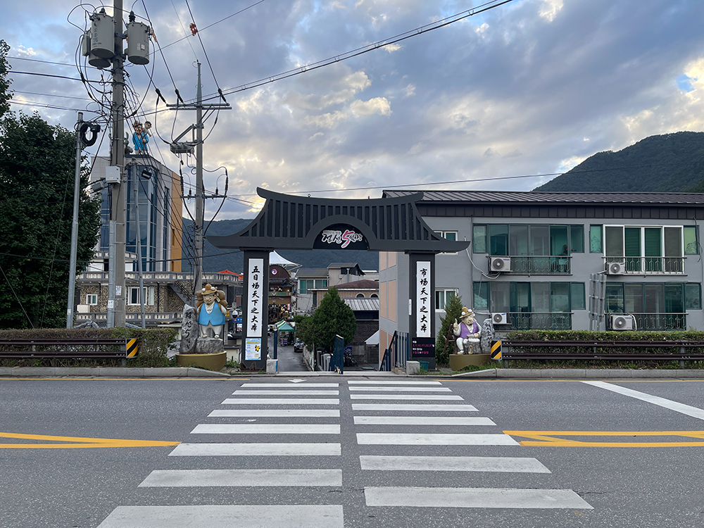 그리고 정선 5일장 문 너머로 시장 입구가 크게 보인다.