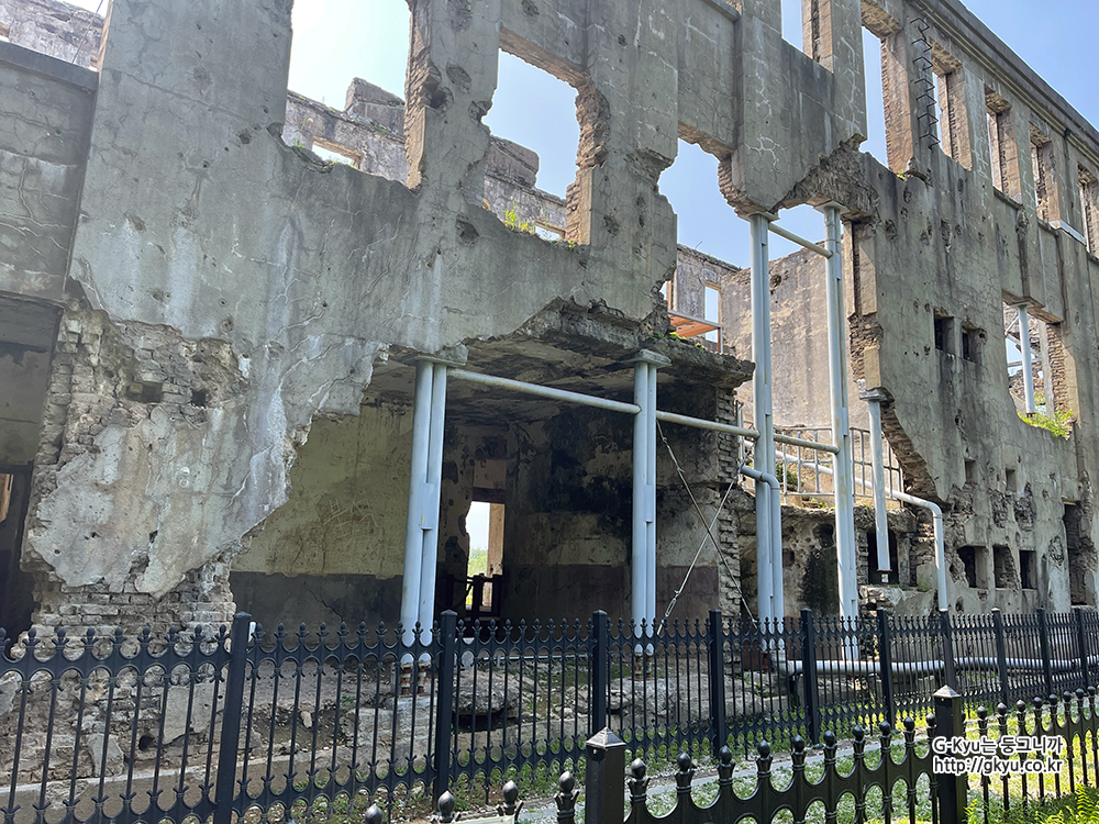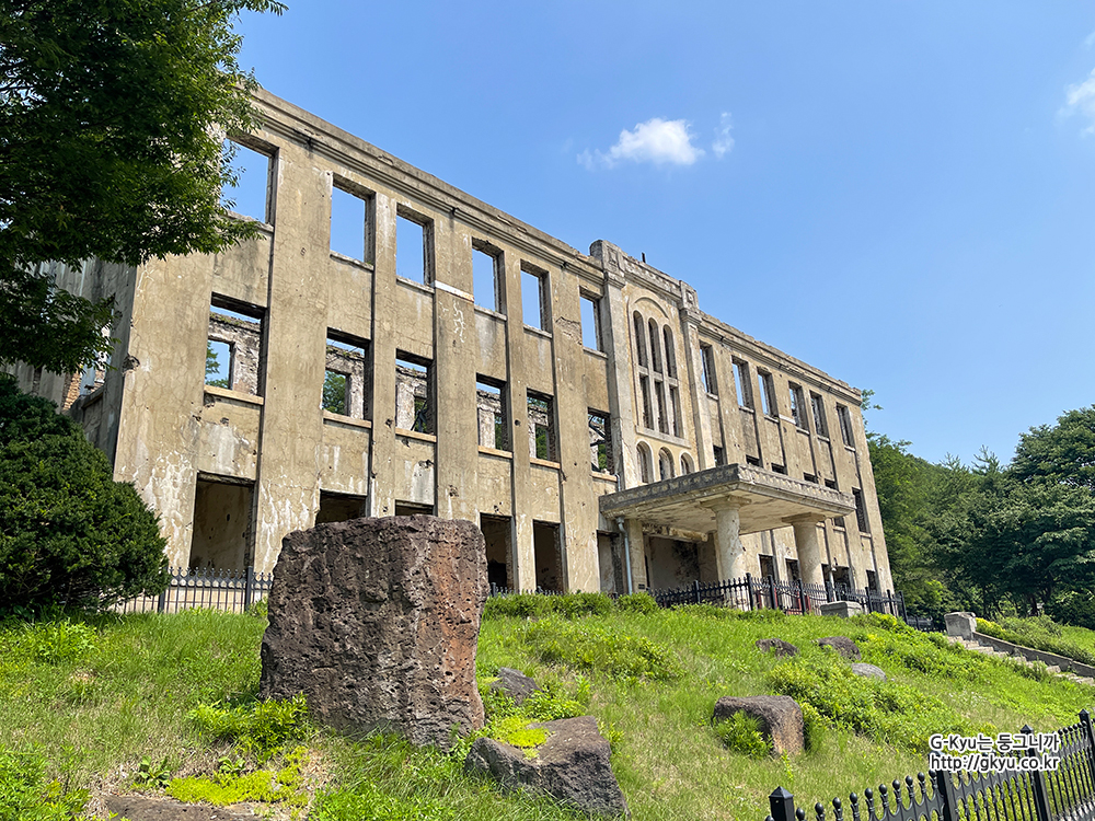 여기저기 포탄 자국과 앙상한 뼈대만 남아있는 노동당사는 6.25 전쟁의 아픔과