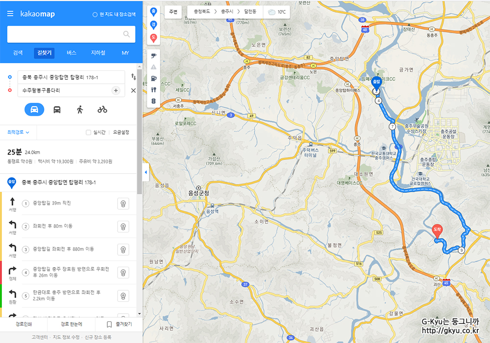 막히지 않는 때라면, 자동차로 25분 소요된다