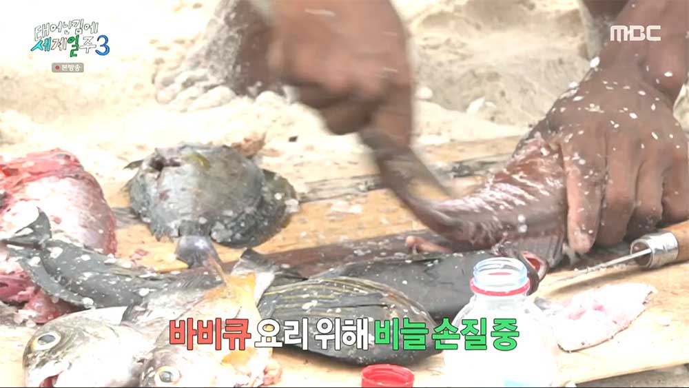 바닷물만 들이킨 채 지친 기안84는 현지인이 잡은 물고기와 그들의 친척이 잡고,