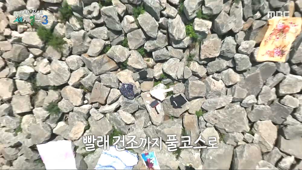 기안84의 옷가지들을 빨래 한 뒤, 돌 위에 올려놓아