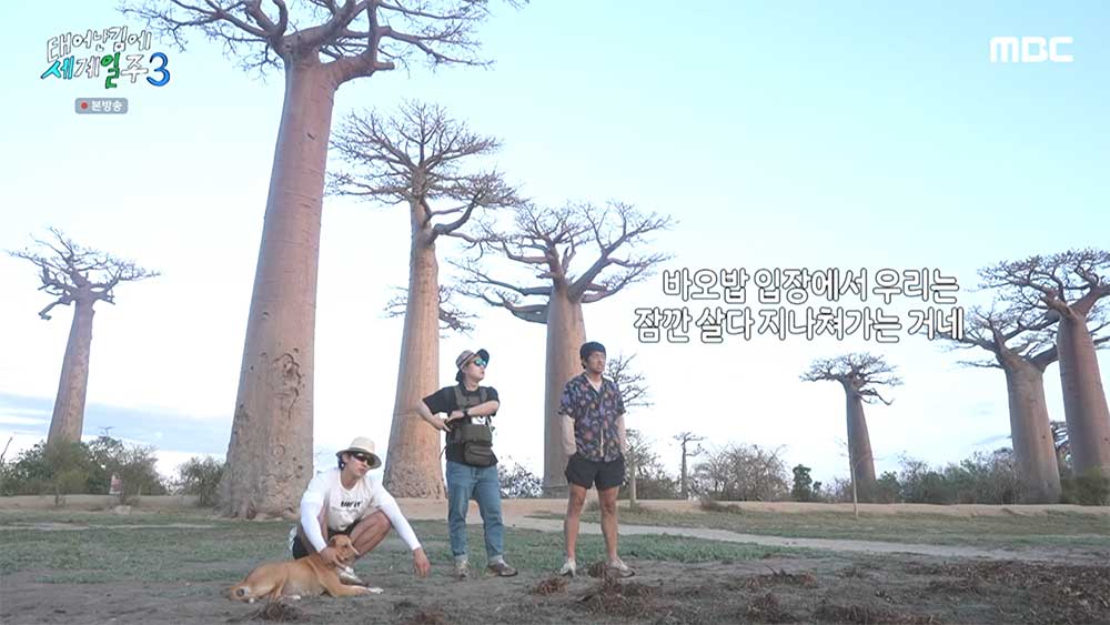 바오밥 애비뉴 근처에서 캠핑을 마친 기안84, 덱스, 빠니보틀은 동이 트기 전