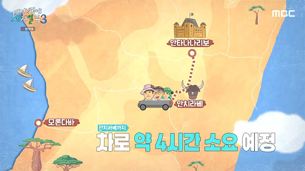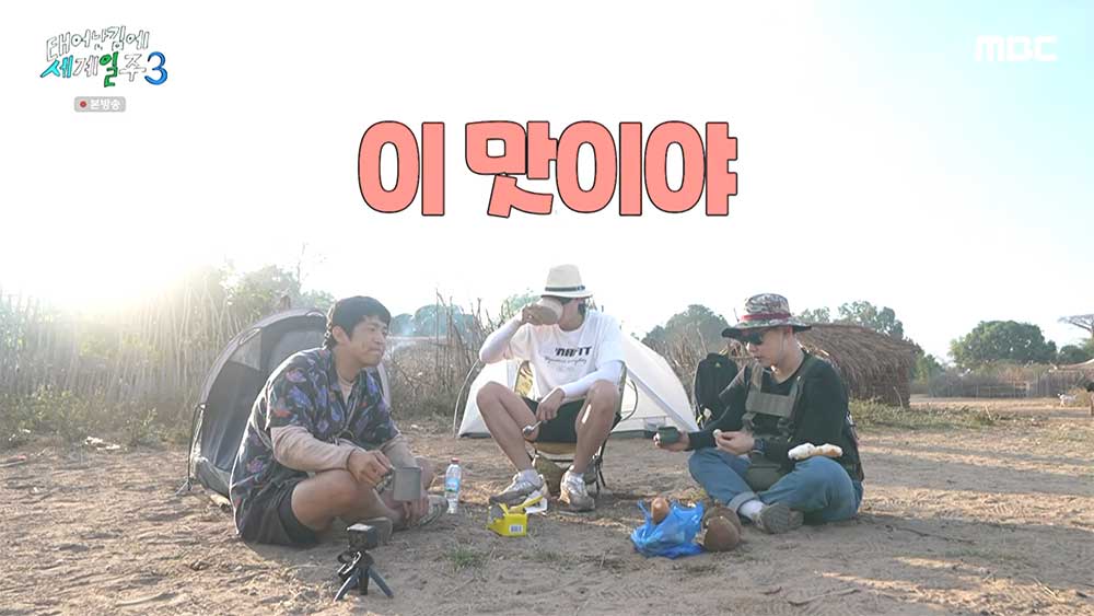 바오밥 애비뉴 근처에서 캠핑을 마친 기안84, 덱스, 빠니보틀은 동이 트기 전