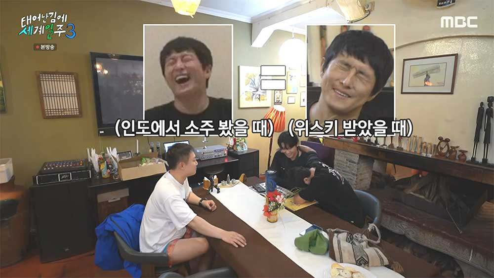 이때 선물로 주자 기안84는 인도에서 소주 봤을 때 표정과 마찬가지로