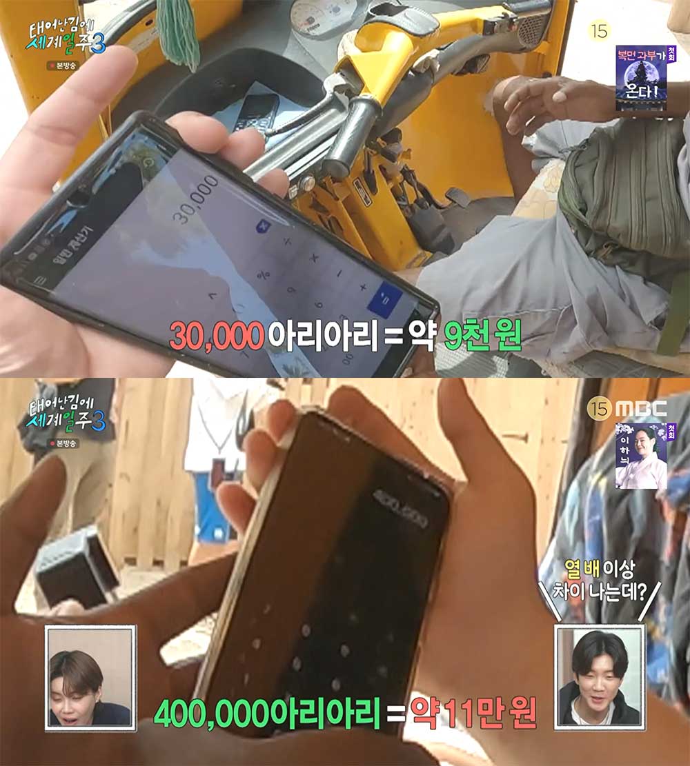 기안84와 빠니보틀의 툭툭이 기사는 400,000 아리아리 (약 110,000원)을 부른다.