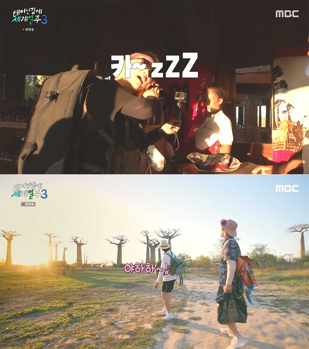 그리고 기안84와 덱스는 바오밥 나무 주변을 둘러보며, 관광객들이 모여 한 곳을 바라보는 걸 보고