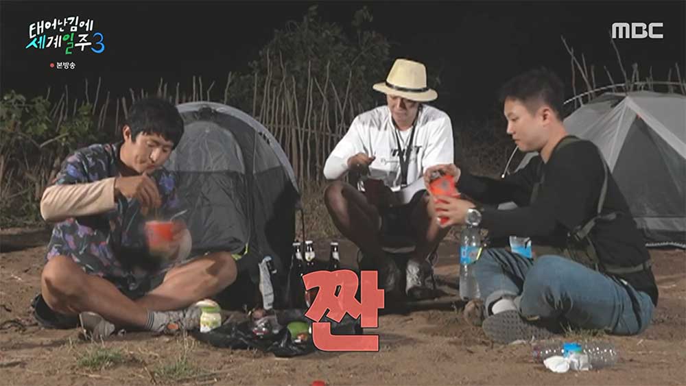 컵라면과 맥주, 염소고기 여기에 덱스가 준비한 전투 식량과 소주를 함께 하며