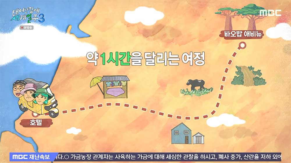 바오밥 애비뉴까지 거리가 있어서 도보로는 무리고 약 1시간 걸리는 거리를 가야 하므로