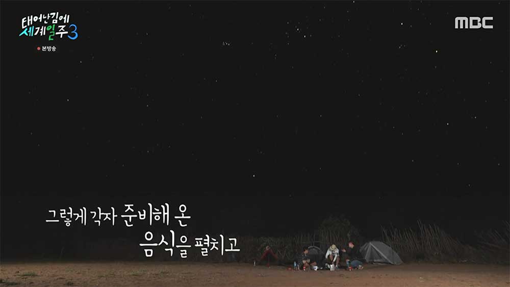 각자 준비한 음식을 먹으며 바오밥 애비뉴 캠핑을 시작한다.
