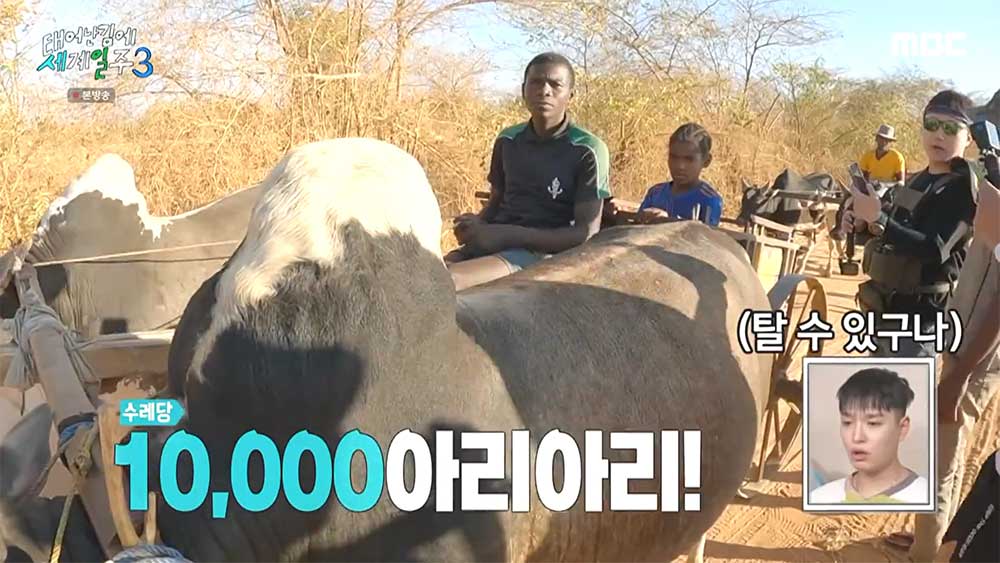 걸어가며 보는 풍경을 감상하고 덱스와 빠니보틀은 소수레를 탄다.
